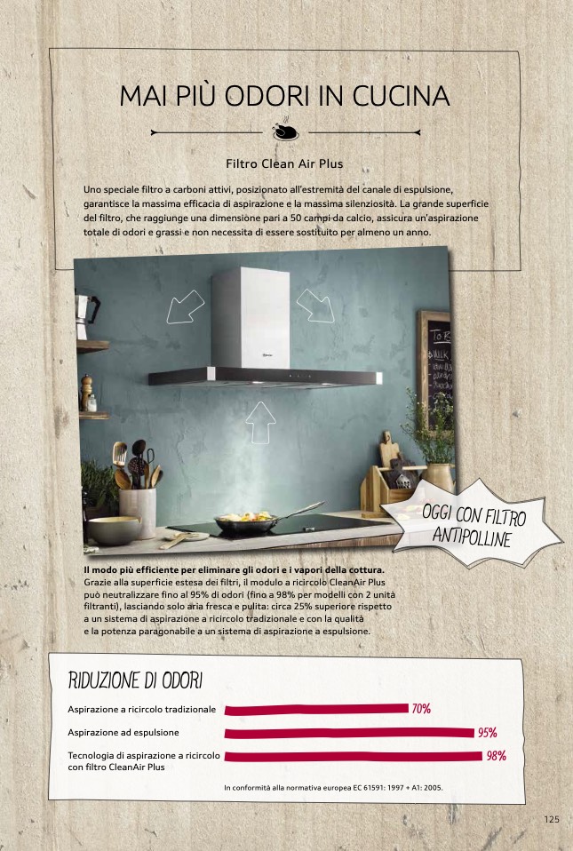 Il modo più efficiente per eliminare gli odori e i vapori della cottura.
