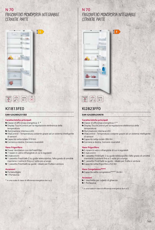1 Capacità netta frigorifero 252 litri