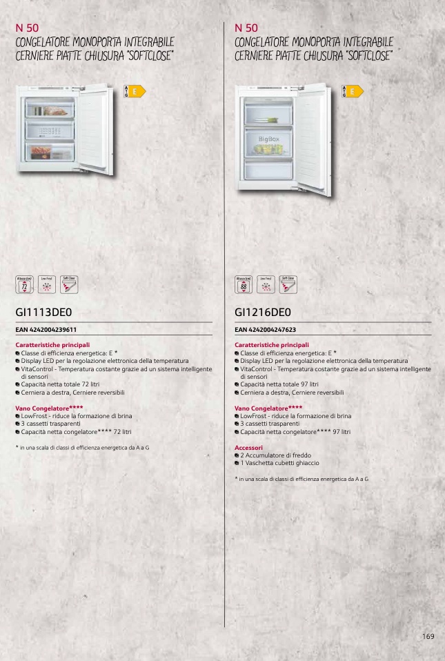 1 Capacità netta congelatore**** 72 litri