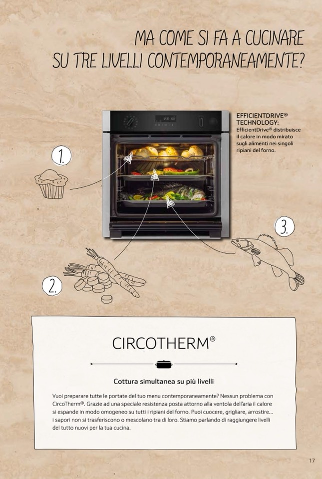 si espande in modo omogeneo su tutti i ripiani del forno. Puoi cuocere, grigliare, arrostire