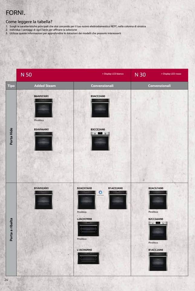 1. Scegli le caratteristiche principali che stai cercando per il tuo nuovo elettrodomestico NEFF, nella colonna di sinistra