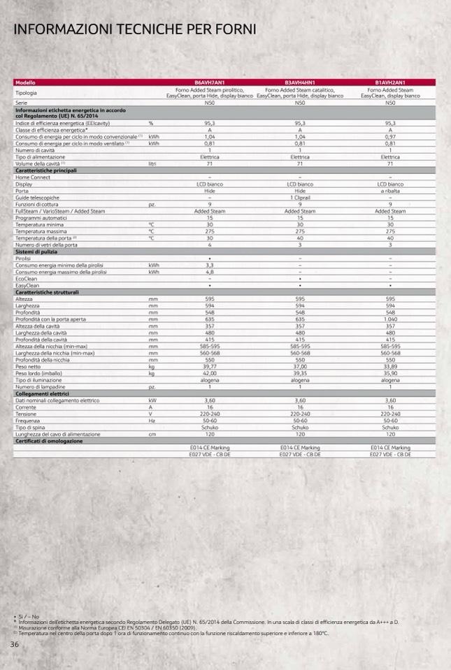 * Informazioni dell’etichetta energetica secondo Regolamento Delegato (UE) N. 65/2014 della Commissione. In una scala di classi di ef