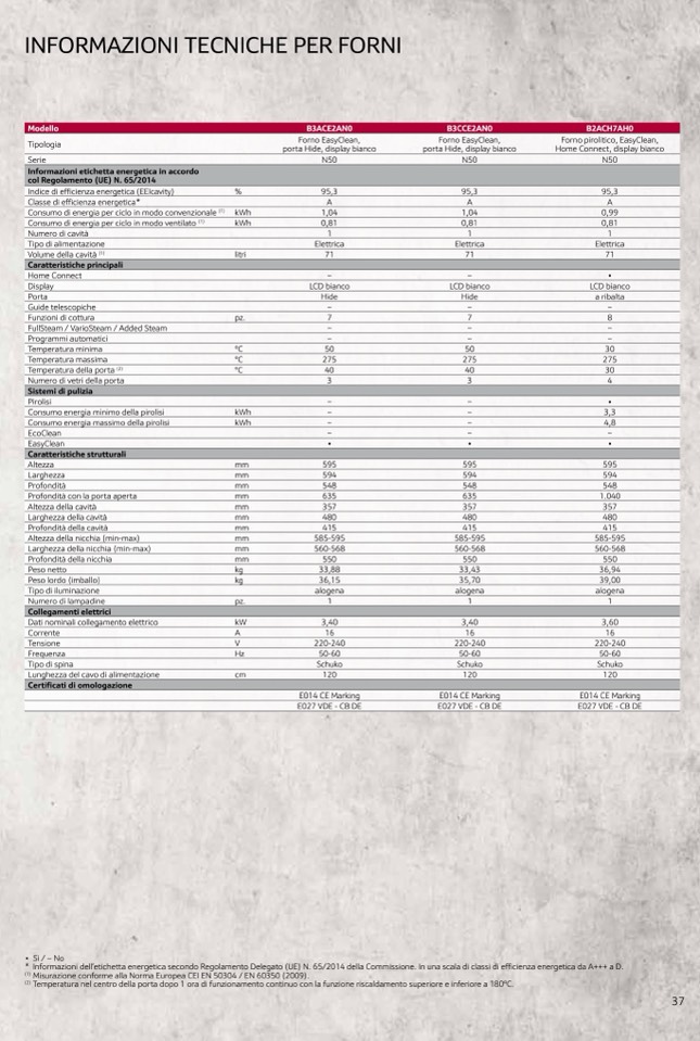 * Informazioni dell’etichetta energetica secondo Regolamento Delegato (UE) N. 65/2014 della Commissione. In una scala di classi di ef