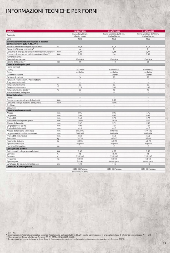 * Informazioni dell’etichetta energetica secondo Regolamento Delegato (UE) N. 65/2014 della Commissione. In una scala di classi di ef