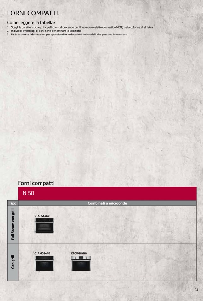 1. Scegli le caratteristiche principali che stai cercando per il tuo nuovo elettrodomestico NEFF, nella colonna di sinistra