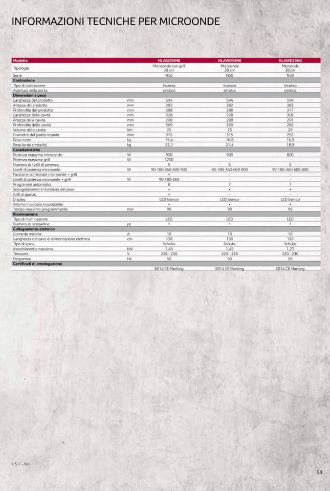 Livelli di potenza microonde