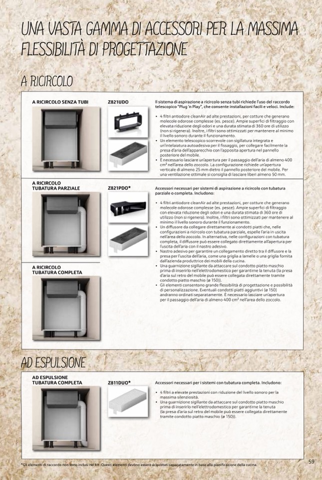 *Gli elementi di raccordo non sono inclusi nel kit. Questi elementi devono essere acquistati separatamente in base alla pianificazione della cucina.