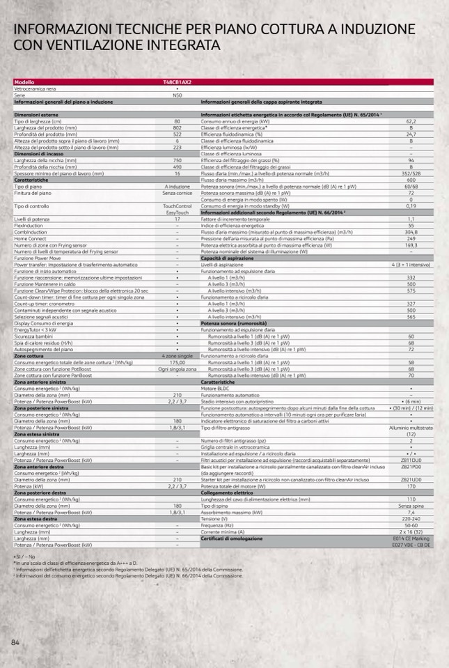 Informazioni del consumo energetico secondo Regolamento Delegato (UE) N. 66/2014 della Commissione.