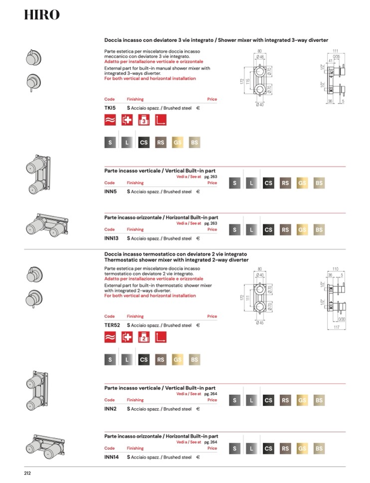 Doccia incasso con deviatore 3 vie integrato / Shower mixer with integrated 3-way diverter