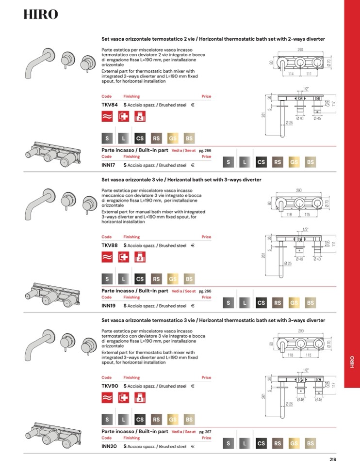 integrated 2-ways diverter and L=190 mm fixed