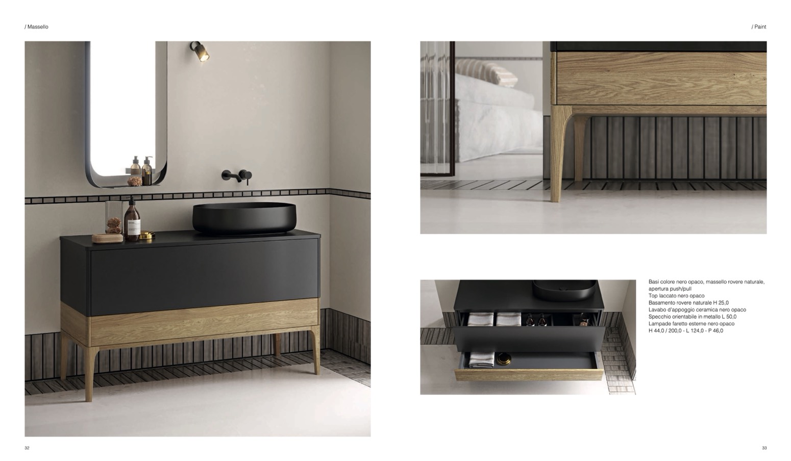 Basi colore nero opaco, massello rovere naturale,
