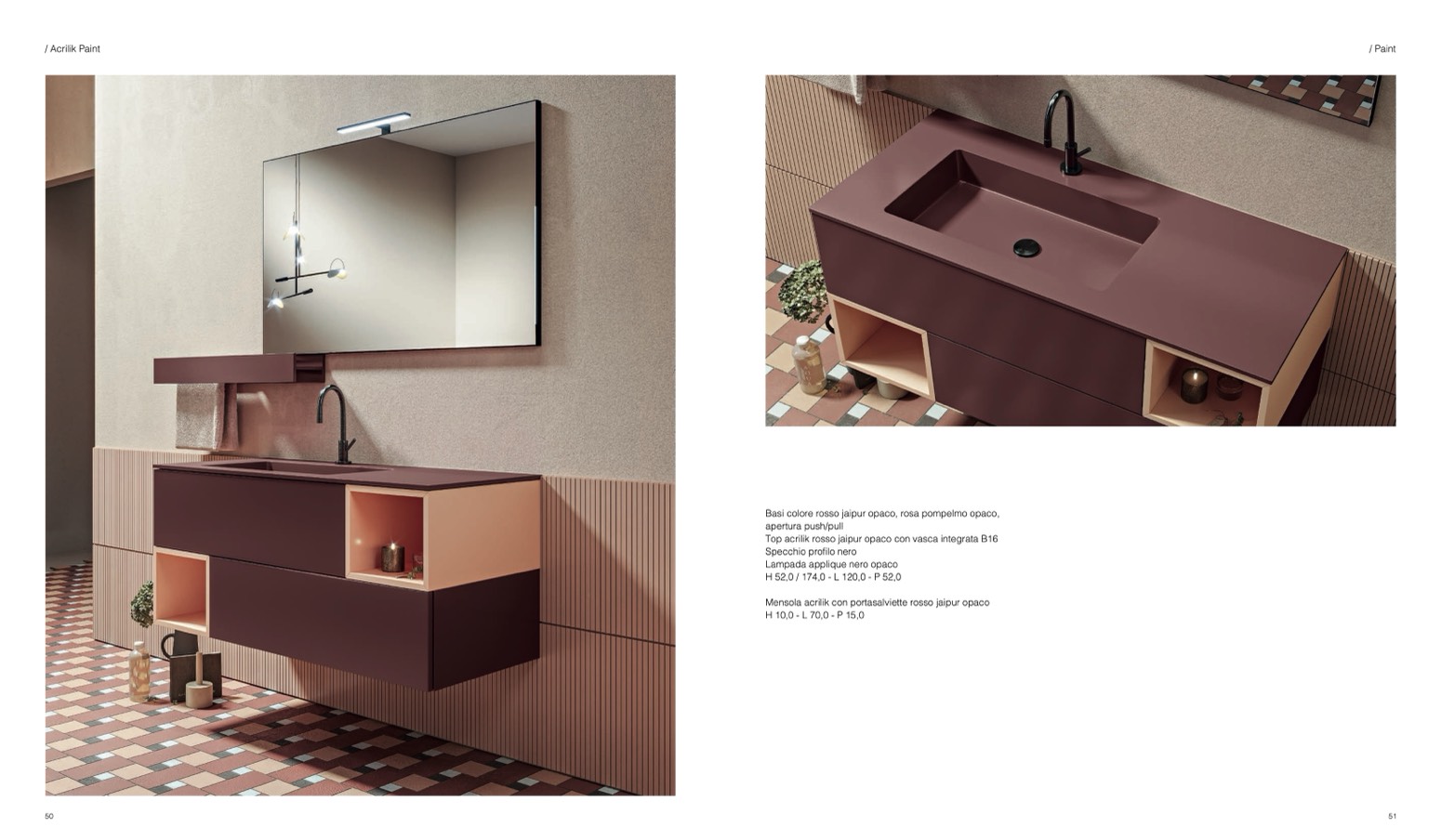 Top acrilik rosso jaipur opaco con vasca integrata B16