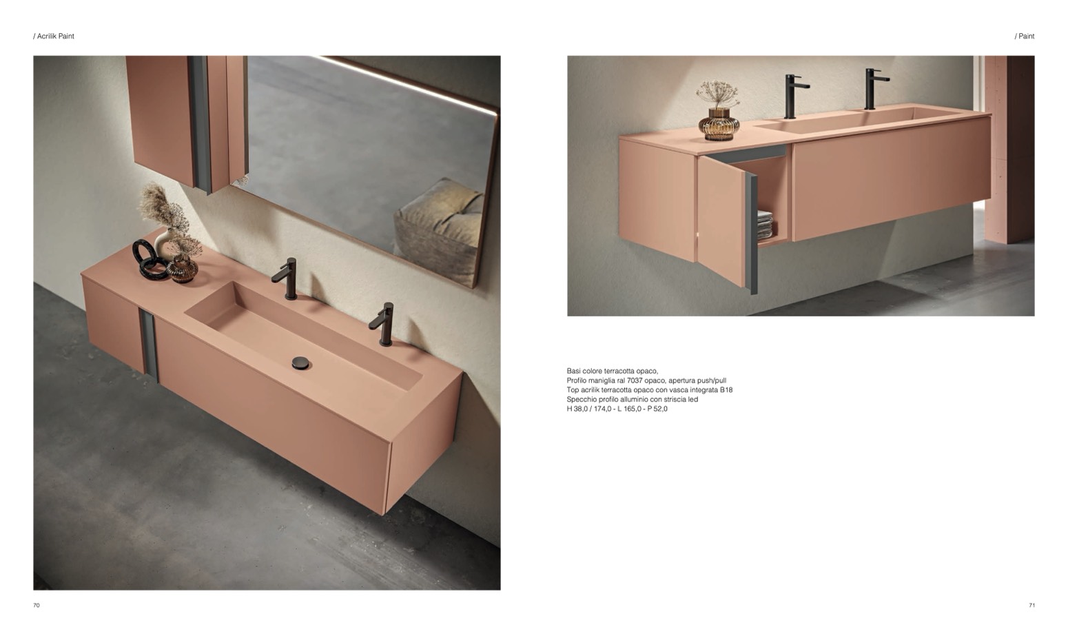 Top acrilik terracotta opaco con vasca integrata B18