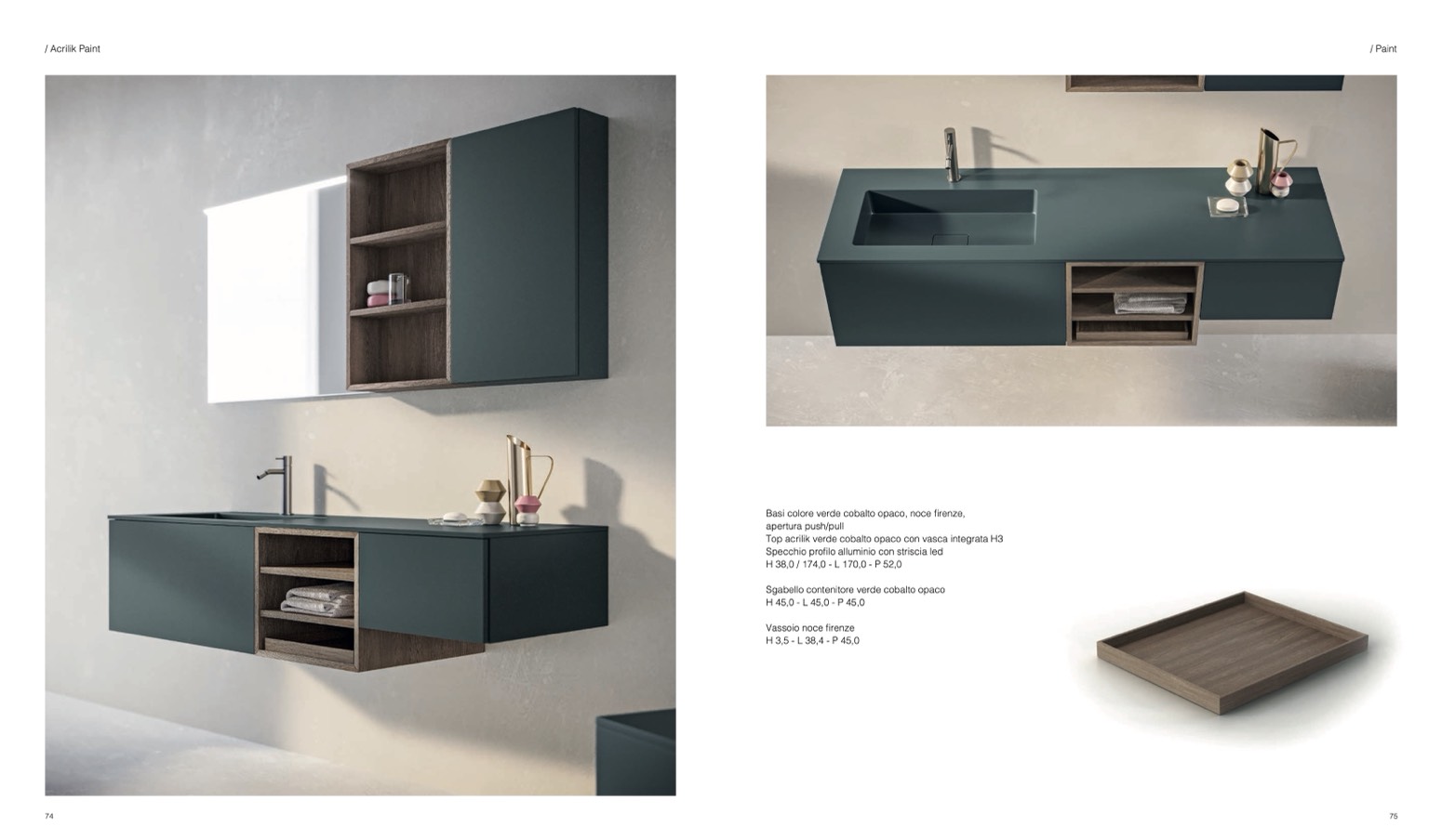 Basi colore verde cobalto opaco, noce firenze,
