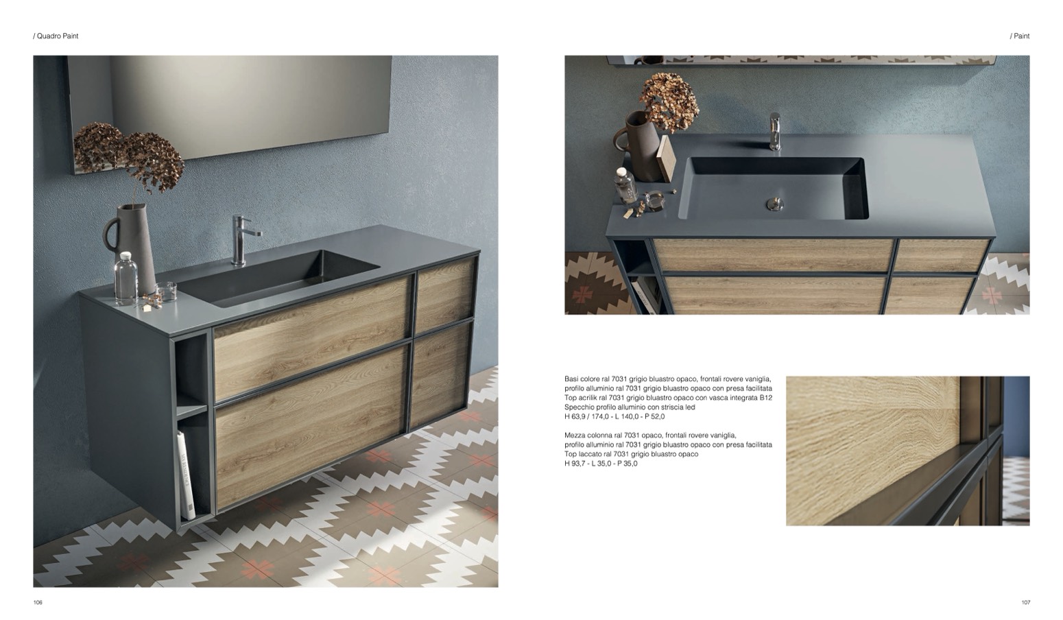 Basi colore ral 7031 grigio bluastro opaco, frontali rovere vaniglia,