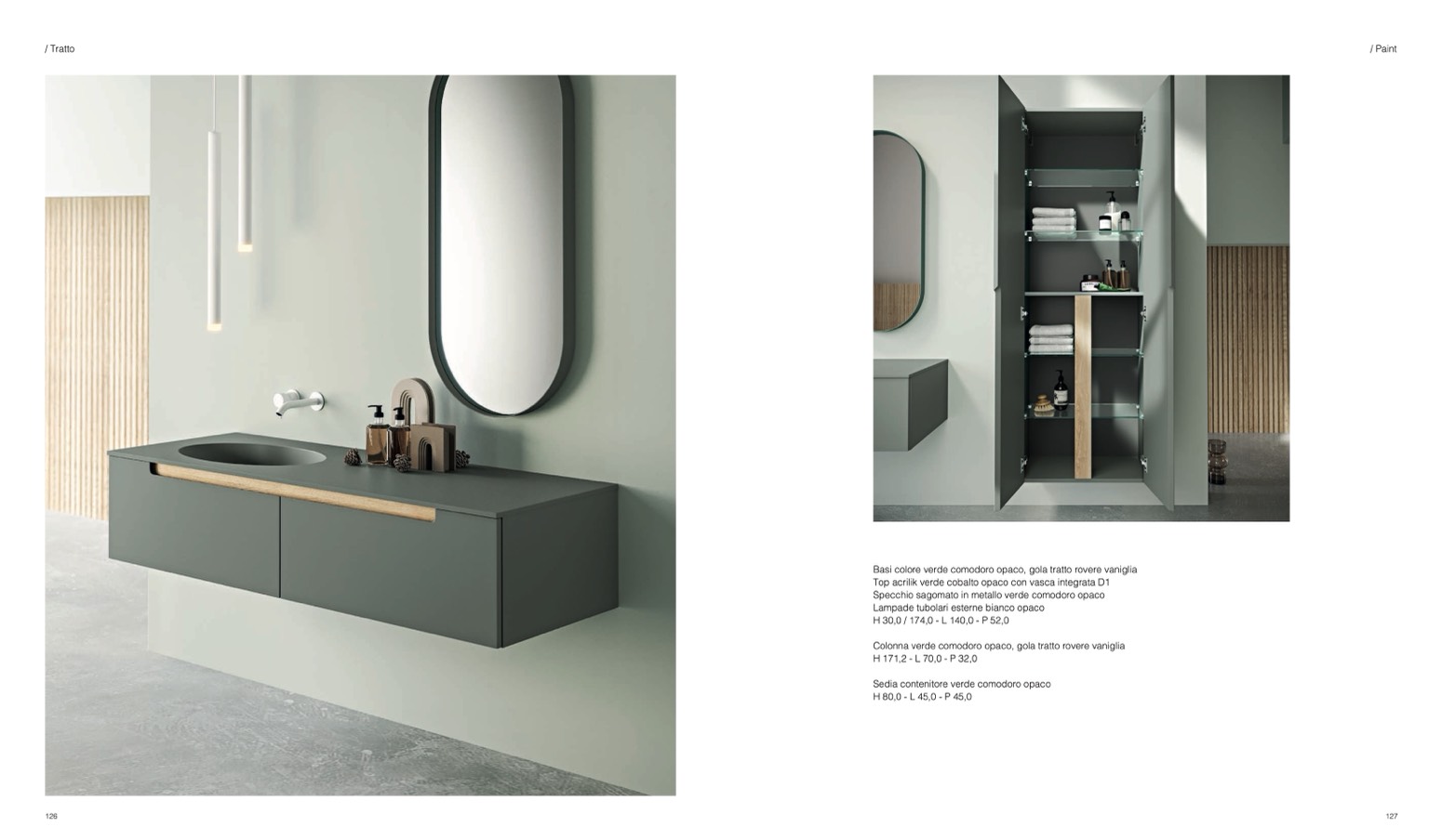 Basi colore verde comodoro opaco, gola tratto rovere vaniglia