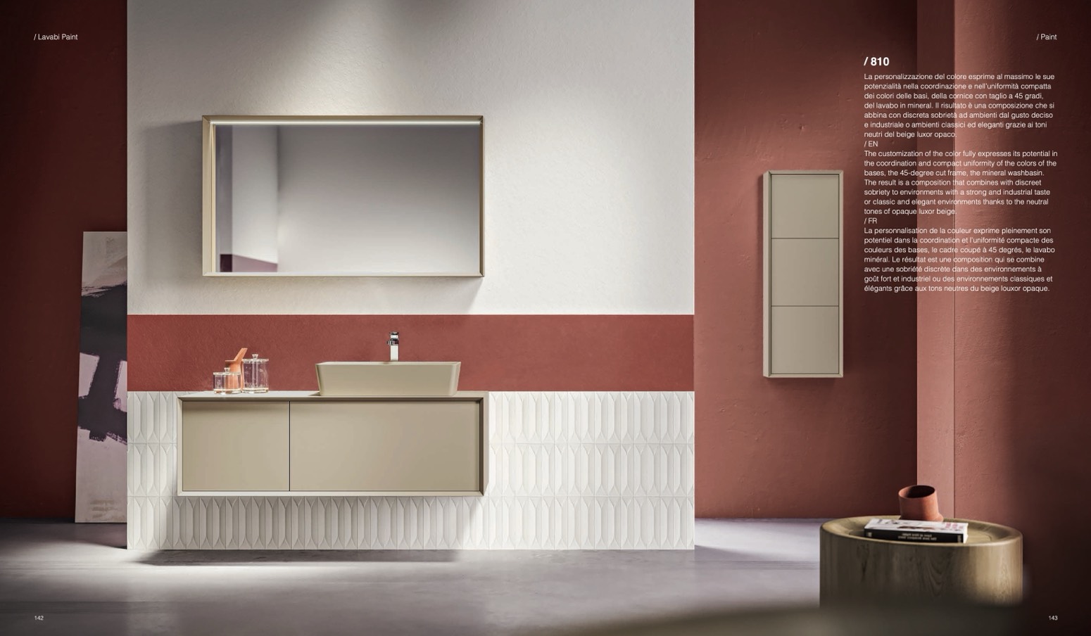 couleurs des bases, le cadre coupé à 45 degrés, le lavabo