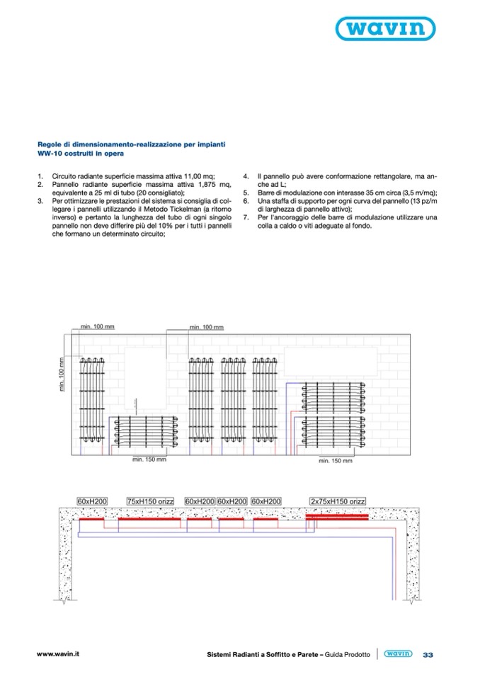 5. Barre di modulazione con interasse 35 cm circa (3,5 m/mq);