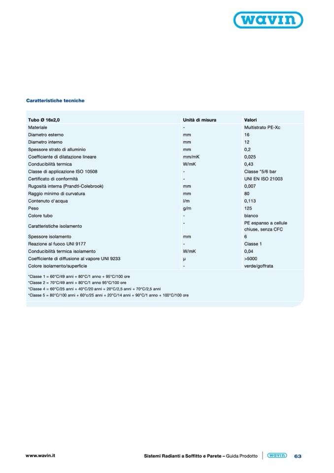 *Classe 1 = 60°C/49 anni + 80°C/1 anno + 95°C/100 ore