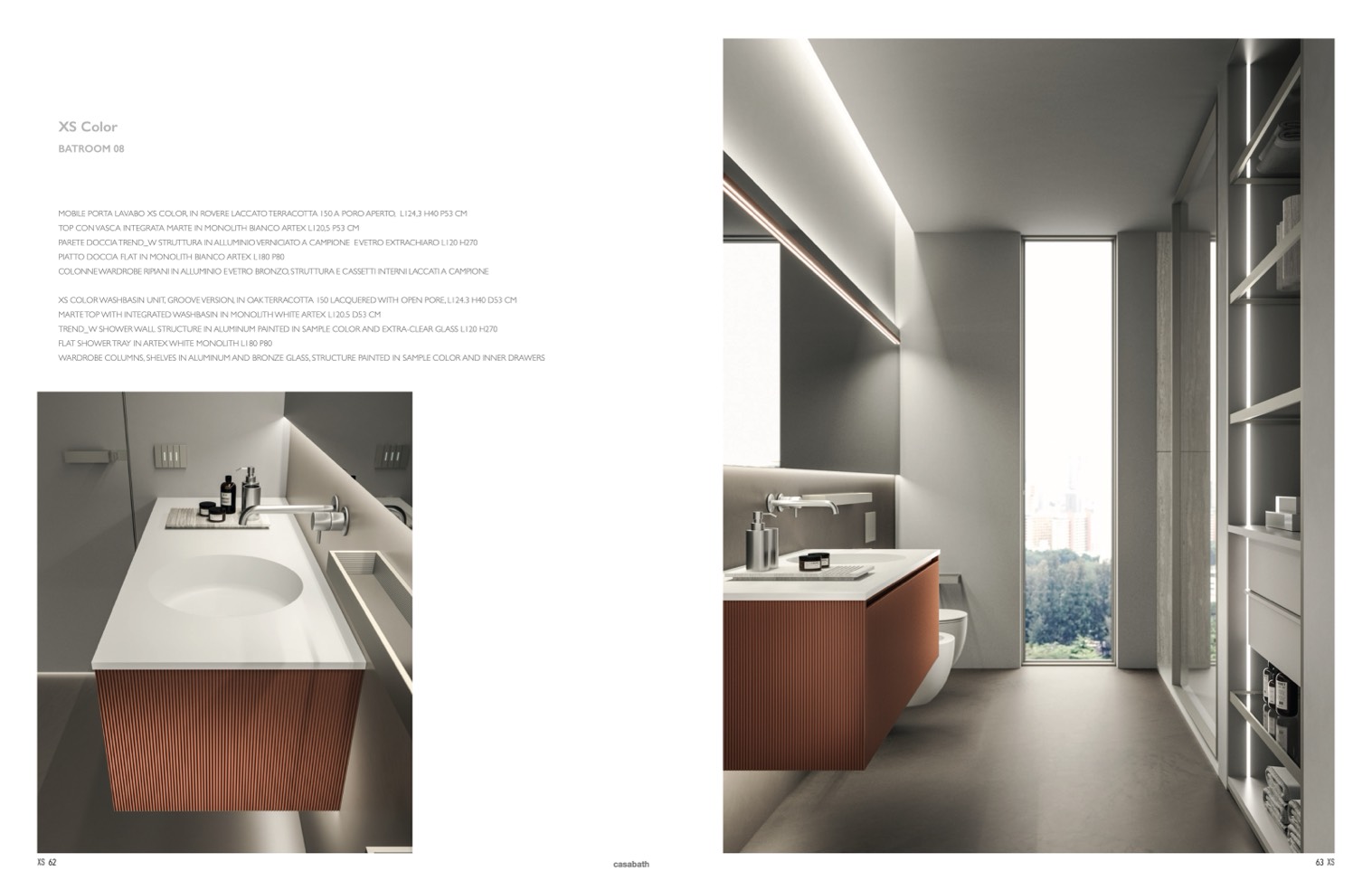 XS COLOR WASHBASIN UNIT, GROOVE VERSION, IN OAK TERRACOTTA 150 LACQUERED WITH OPEN PORE, L124.3 H40 D53 CM