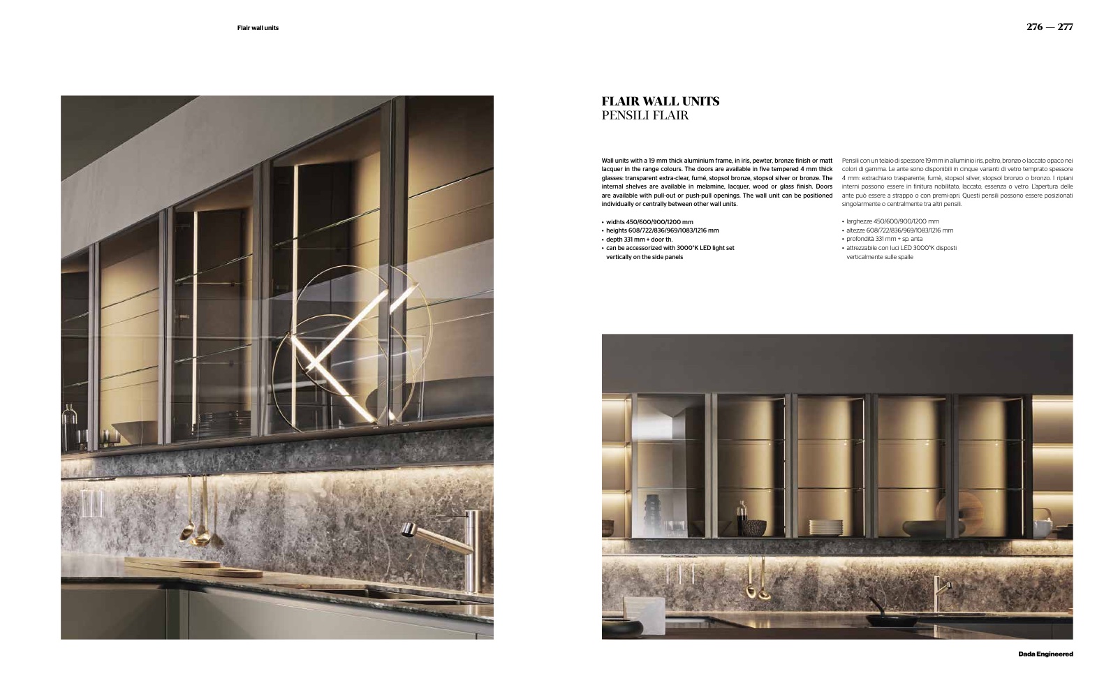Wall units with a 19 mm thick aluminium frame, in iris, pewter, bronze finish or matt