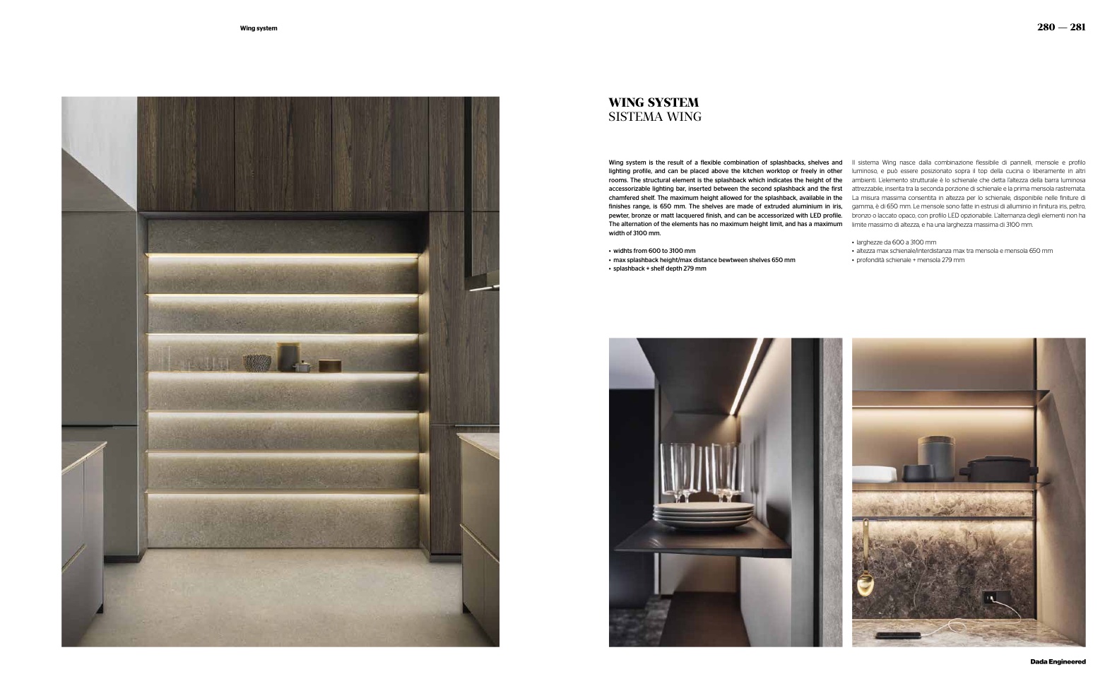 Wing system is the result of a flexible combination of splashbacks, shelves and