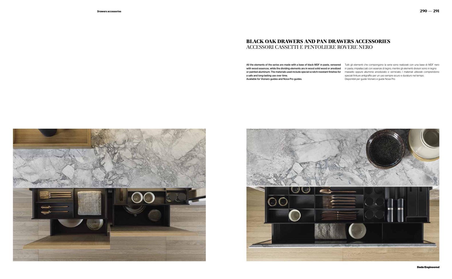 Tutti gli elementi che compongono la serie sono realizzati con una base di MDF nero