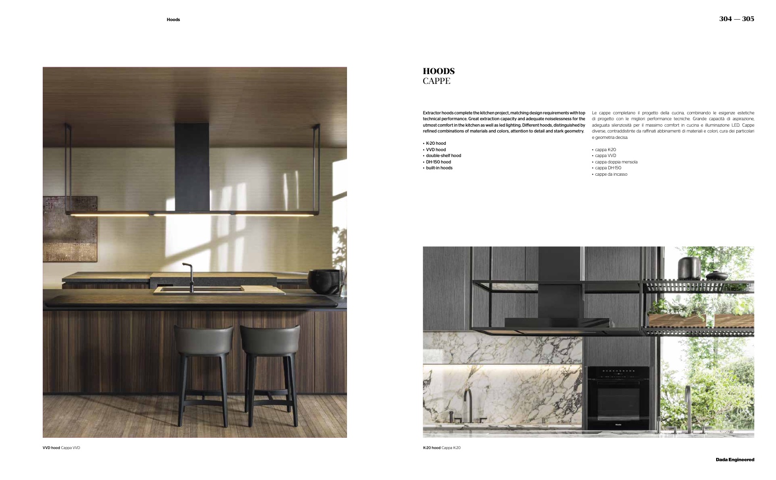 utmost comfort in the kitchen as well as led lighting. Different hoods, distinguished by
