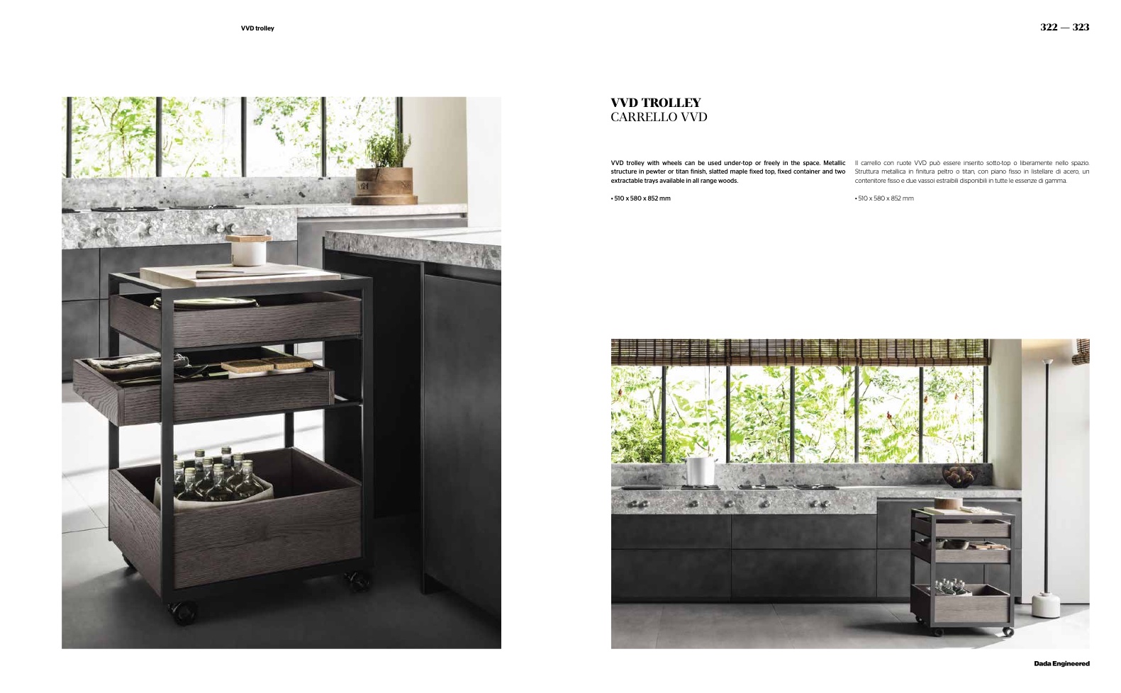 Il carrello con ruote VVD può essere inserito sotto-top o liberamente nello spazio.