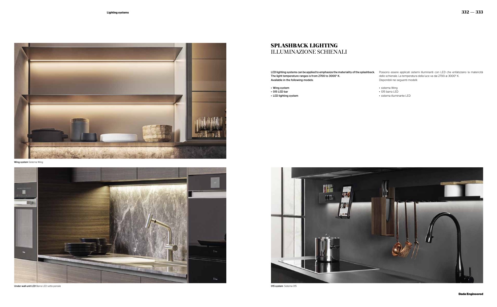 LEDlightingsystemscanbeappliedtoemphasizethematerialityofthesplashback.