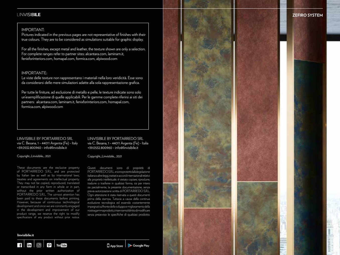 For complete ranges refer to partner sites: alcantara.com, laminam.it,