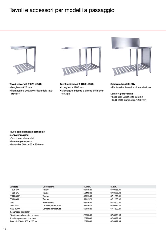 • Tavoli senza lavandini