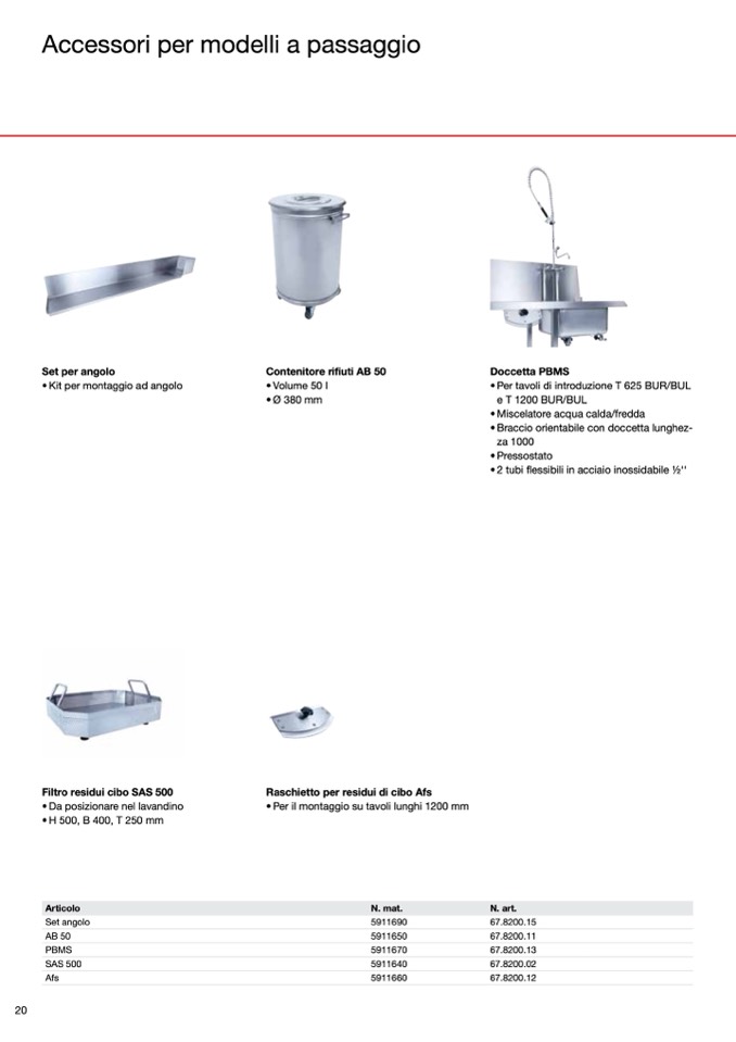 • Per tavoli di introduzione T 625 BUR/BUL