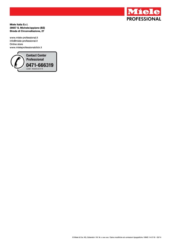 © Miele & Cie. KG, Gütersloh / M. Nr. x xxx xxx / Salvo modifiche e/o omissioni tipografiche / MMS 14-0118 - 03/14