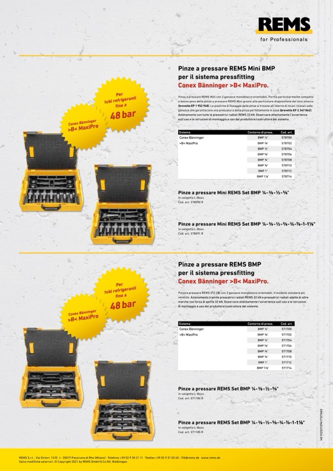 Pinze a pressare REMS Set BMP 1⁄4-3⁄8-1⁄2-5⁄8"