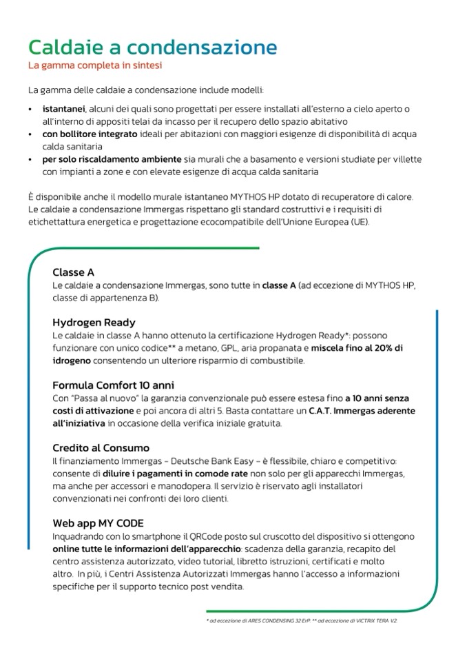 Le caldaie a condensazione Immergas, sono tutte in classe A (ad eccezione di MYTHOS HP,