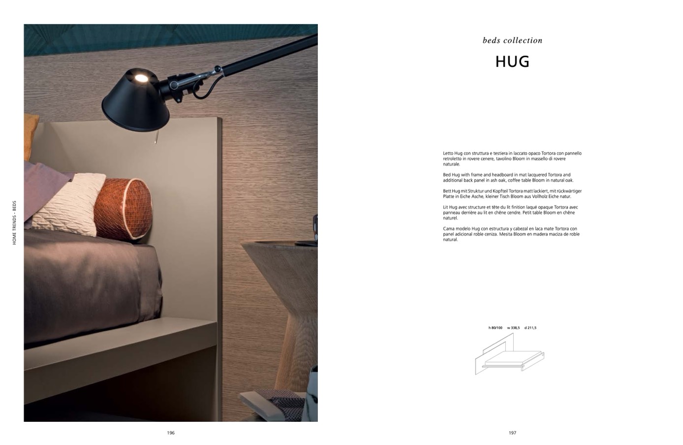 retroletto in rovere cenere, tavolino Bloom in massello di rovere