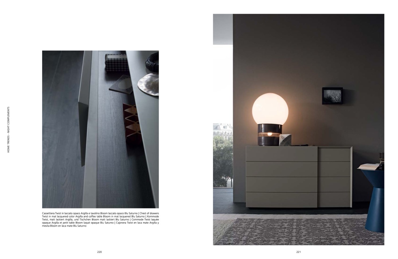 Twist, matt lackiert Argilla, und Tischchen Bloom matt lackiert Blu Saturno | Commode Twist laquée