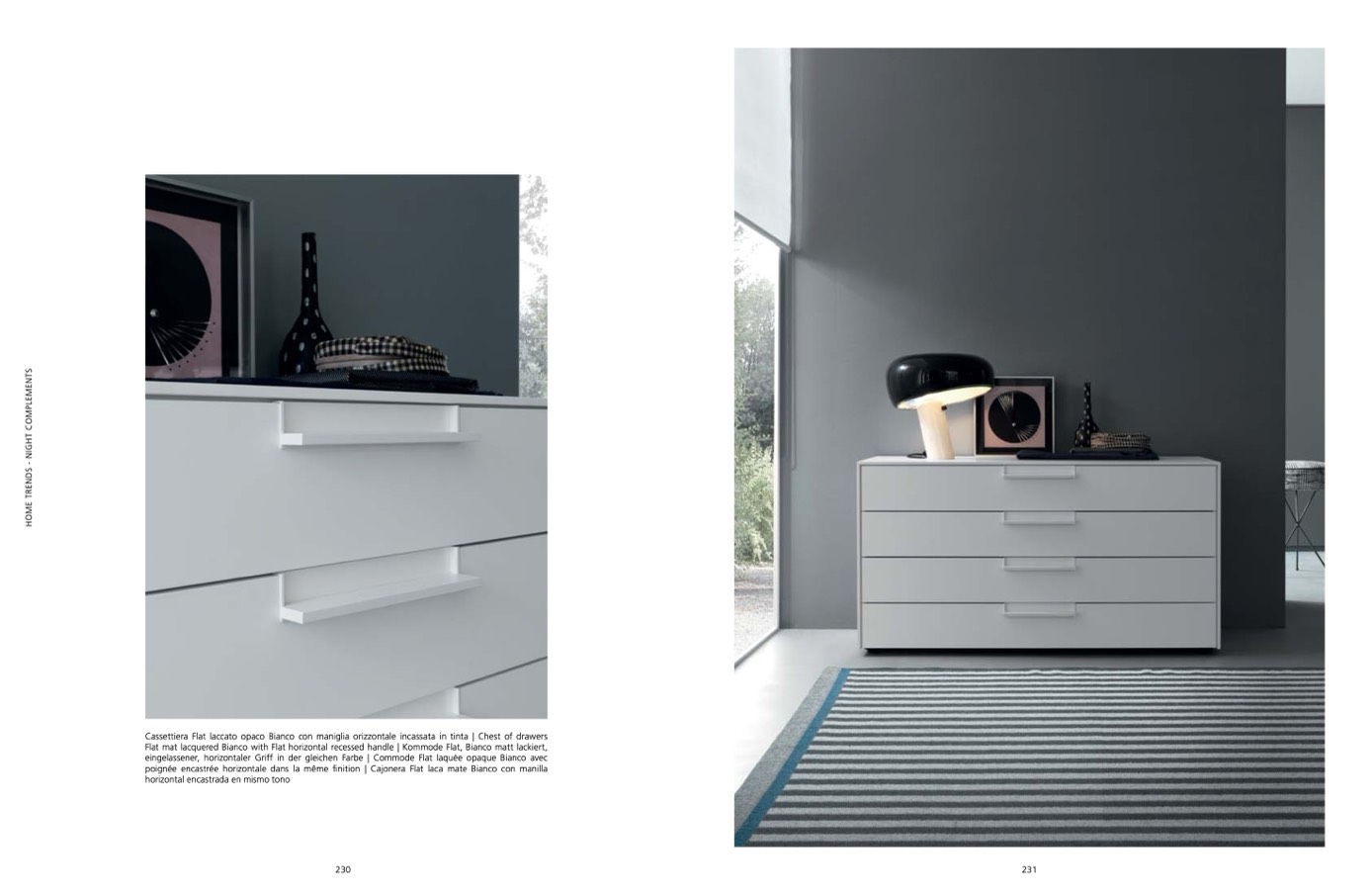Flat mat lacquered Bianco with Flat horizontal recessed handle | Kommode Flat, Bianco matt lackiert,