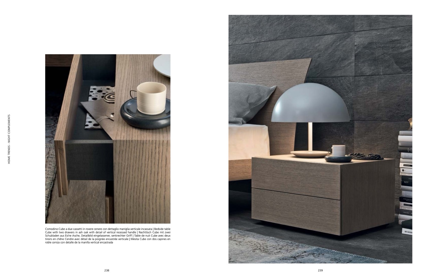 Comodino Cube a due cassetti in rovere cenere con dettaglio maniglia verticale incassata | Bedside table