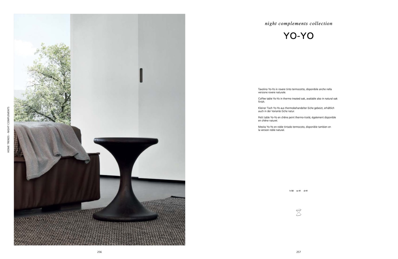 Tavolino Yo-Yo in rovere tinto termocotto, disponibile anche nella