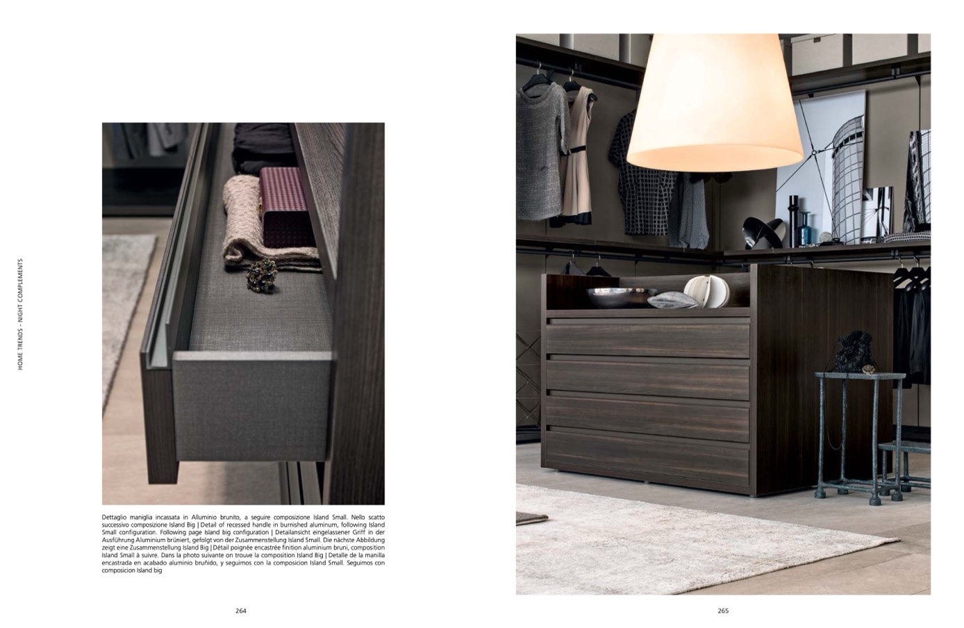 Dettaglio maniglia incassata in Alluminio brunito, a seguire composizione Island Small. Nello scatto