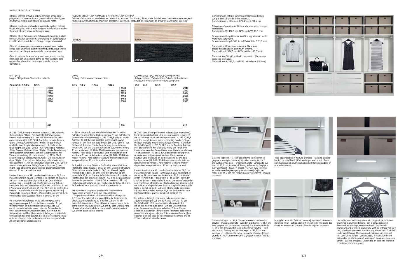 finishes of structures of wardrobes and internal accessories / Ausführung Struktur der Schränke und der Innenausstattungen /