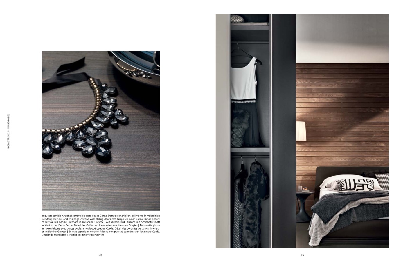 In questo servizio Arizona scorrevole laccato opaco Corda. Dettaglio maniglioni ed interno in melaminico