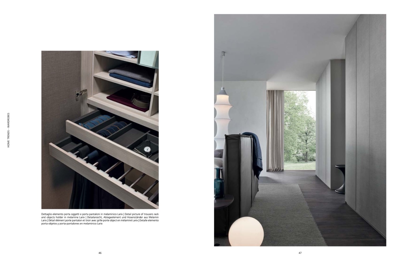 Dettaglio elemento porta oggetti e porta pantaloni in melaminico Larix | Detail picture of trousers rack