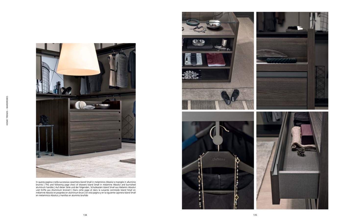 In questa pagina e nella successiva cassettiera Island Small in melaminico Absolut e maniglie in alluminio