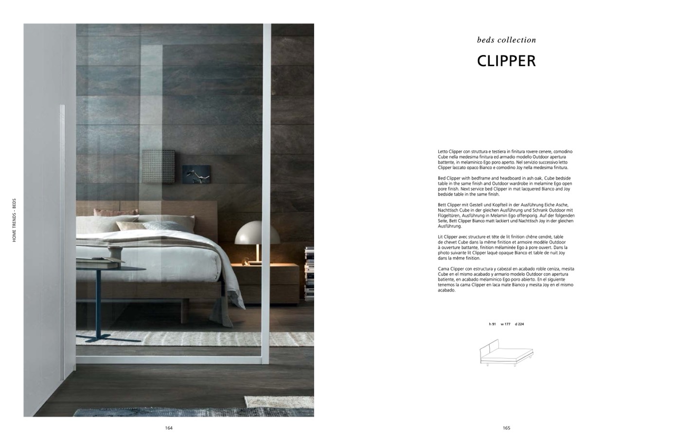 pore finish. Next service bed Clipper in mat lacquered Bianco and Joy