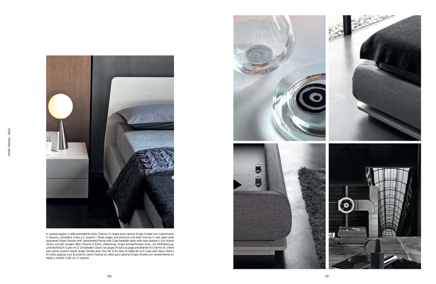In queste pagine e nella precedente letto Charme in rovere poro aperto Grigio Smoke con rivestimento