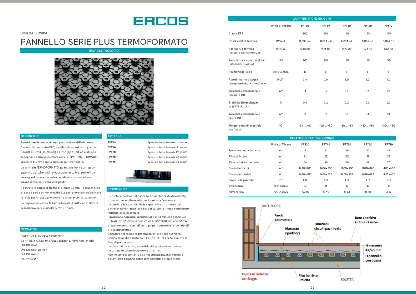 Densità EPS200 (sp. 10 mm), EPS150 (sp 21, 28, 40 e 48 mm)
