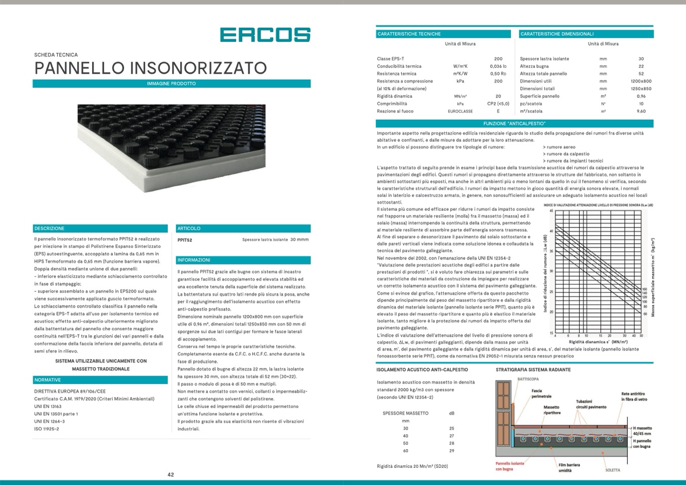 fonoassorbente serie PPIT), come da normativa EN 29052-1 misurata senza nessun precarico